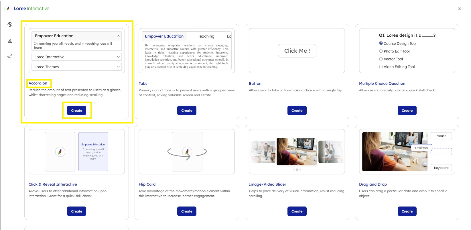 Once the form is open, you'll find the following fields to fill out: Accordion Interactive Title: Input a title or name for the interactive accordion. Section Header: Enter a title for each section, which can be expanded or collapsed by users. Section Body: Input content to be displayed when the section is expanded. |
