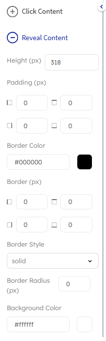 - Reveal Content: Information visible after interacting with click content, enhancing user experience with supplementary details or functionality.