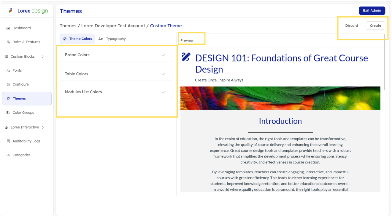 4. This will redirect you to the Custom Theme page. Make the necessary changes to customize your theme as per your preference. (Refer the below Theme customization section for available options.) 5. After your customization, you can view the real-time change in the preview section. 6. Click the "Create" button in the top-right corner to continue the process. 7. By clicking the "Discord" button, the user will be redirected to the theme dashboard page. |