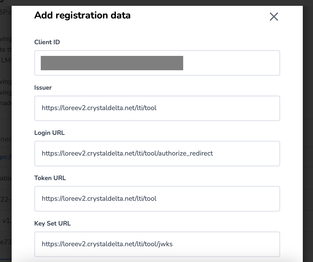 Issuer Url → https://loreev2.crystaldelta.net/lti/tool.
