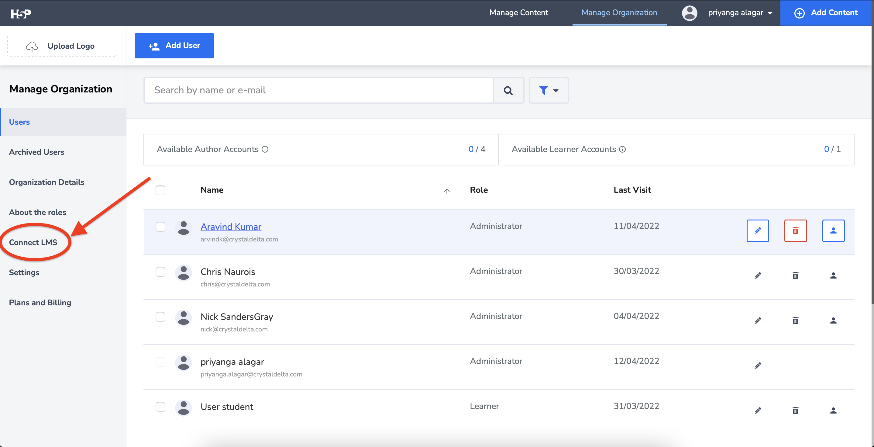 Step 3: Go to "Connect LMS." Refer to the image below: