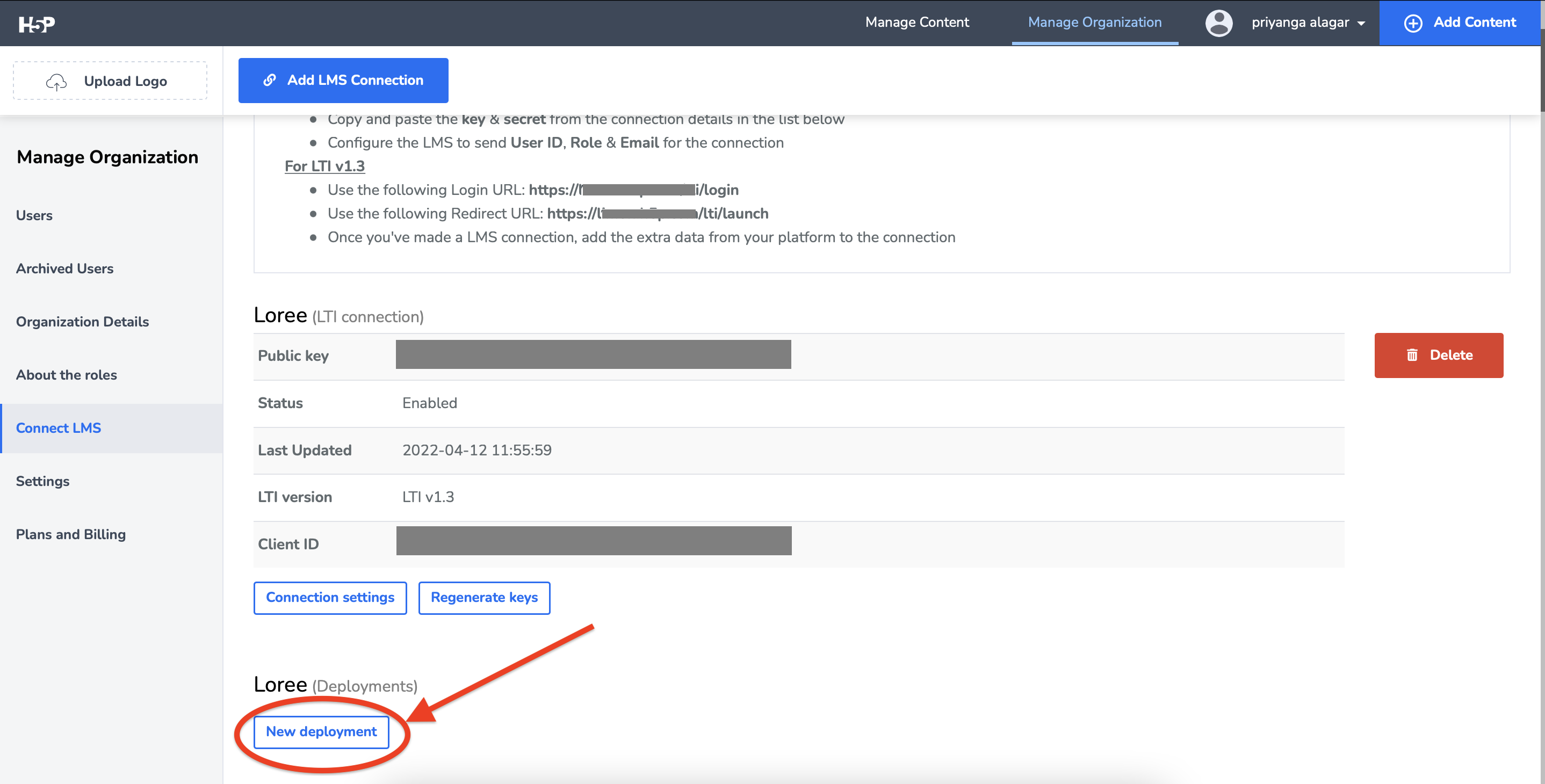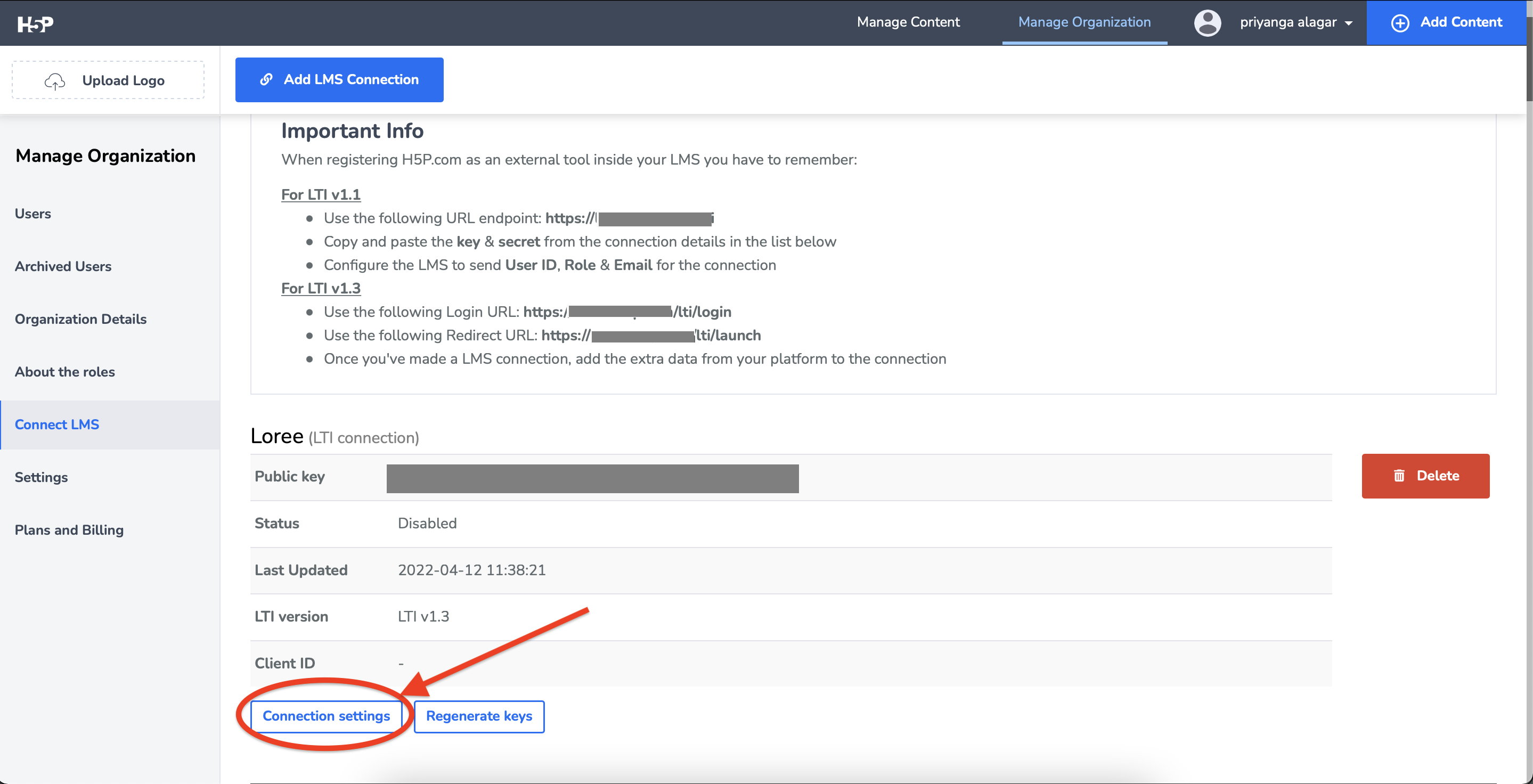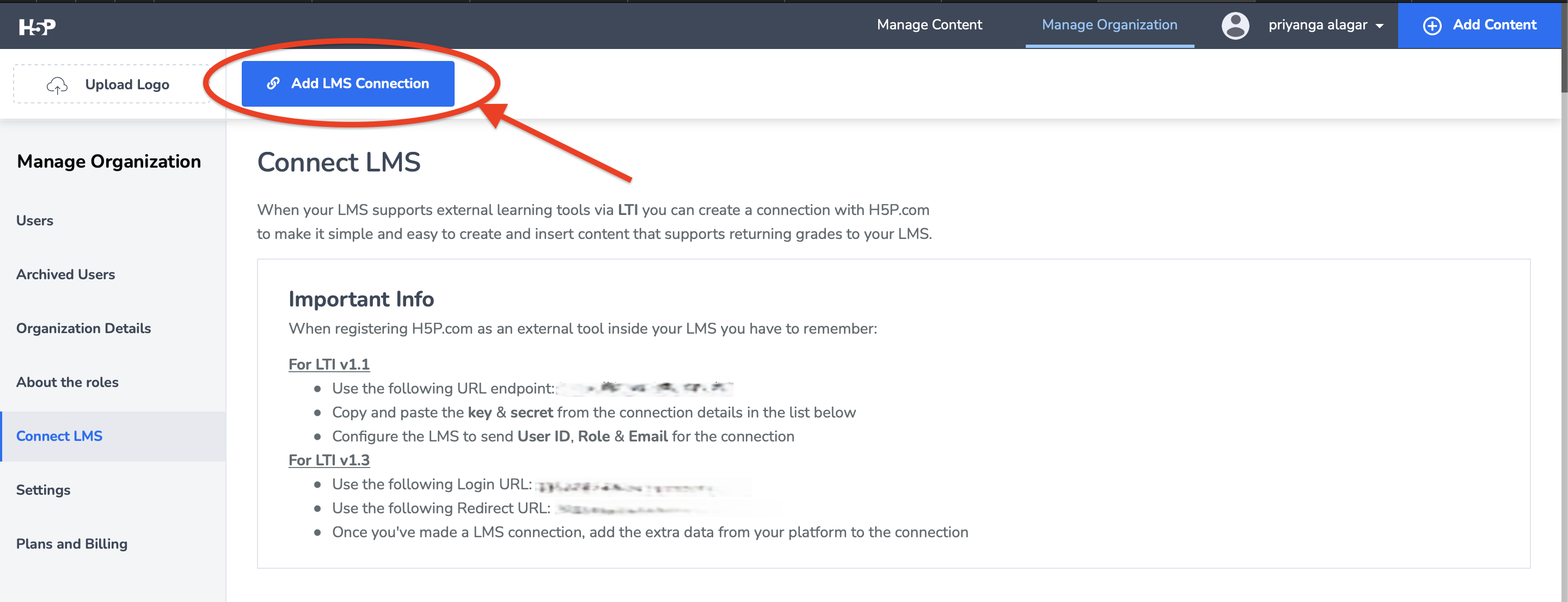 Step 4: Click on “Add LMS Connection.” Refer to the image below: