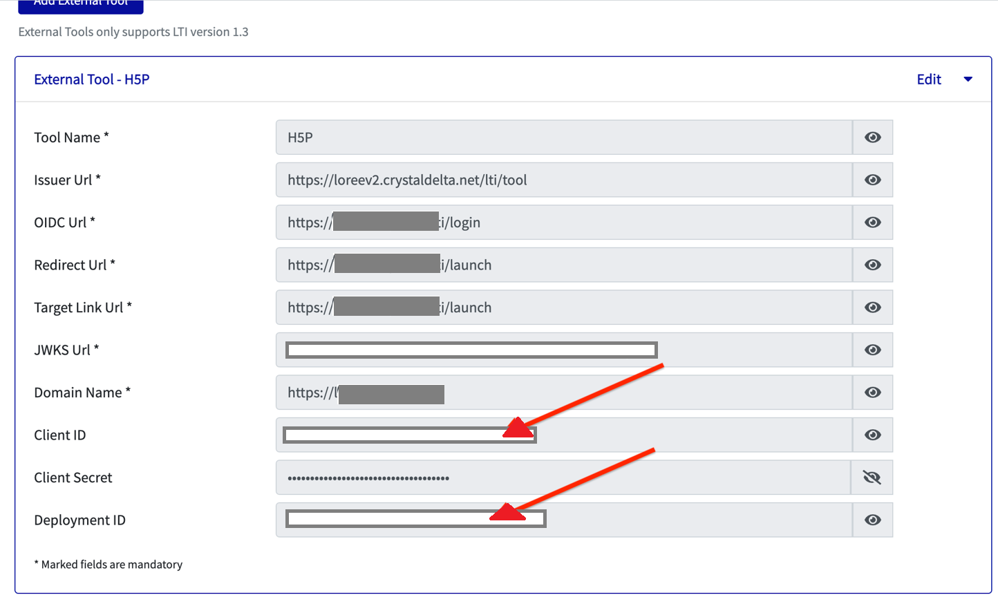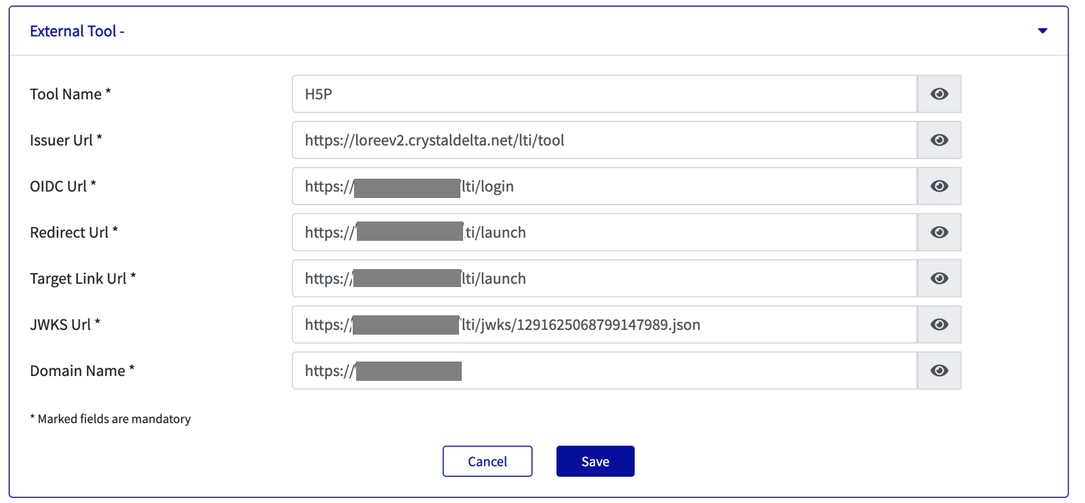 Token URL → https://loreev2.crystaldelta.net/lti/tool.