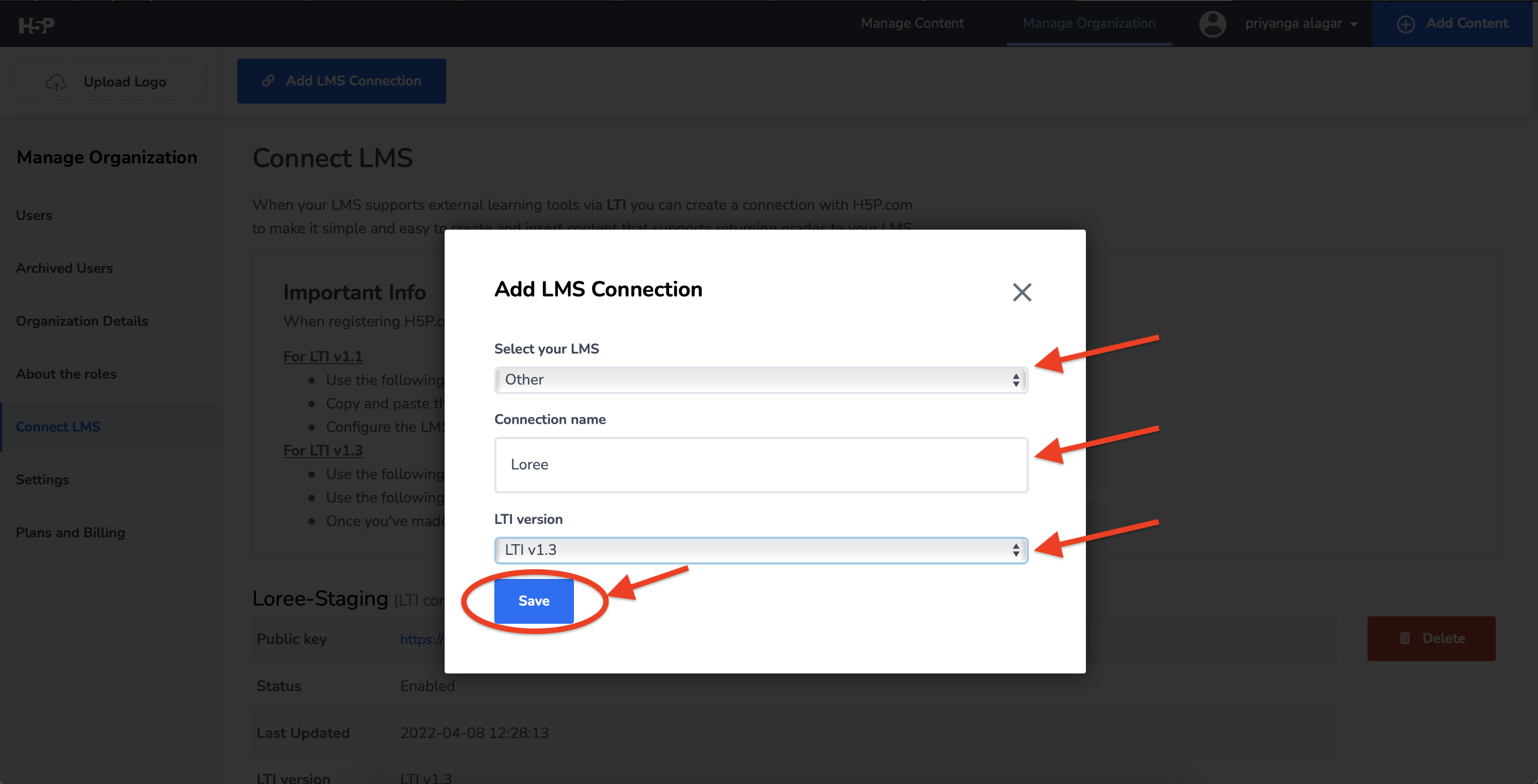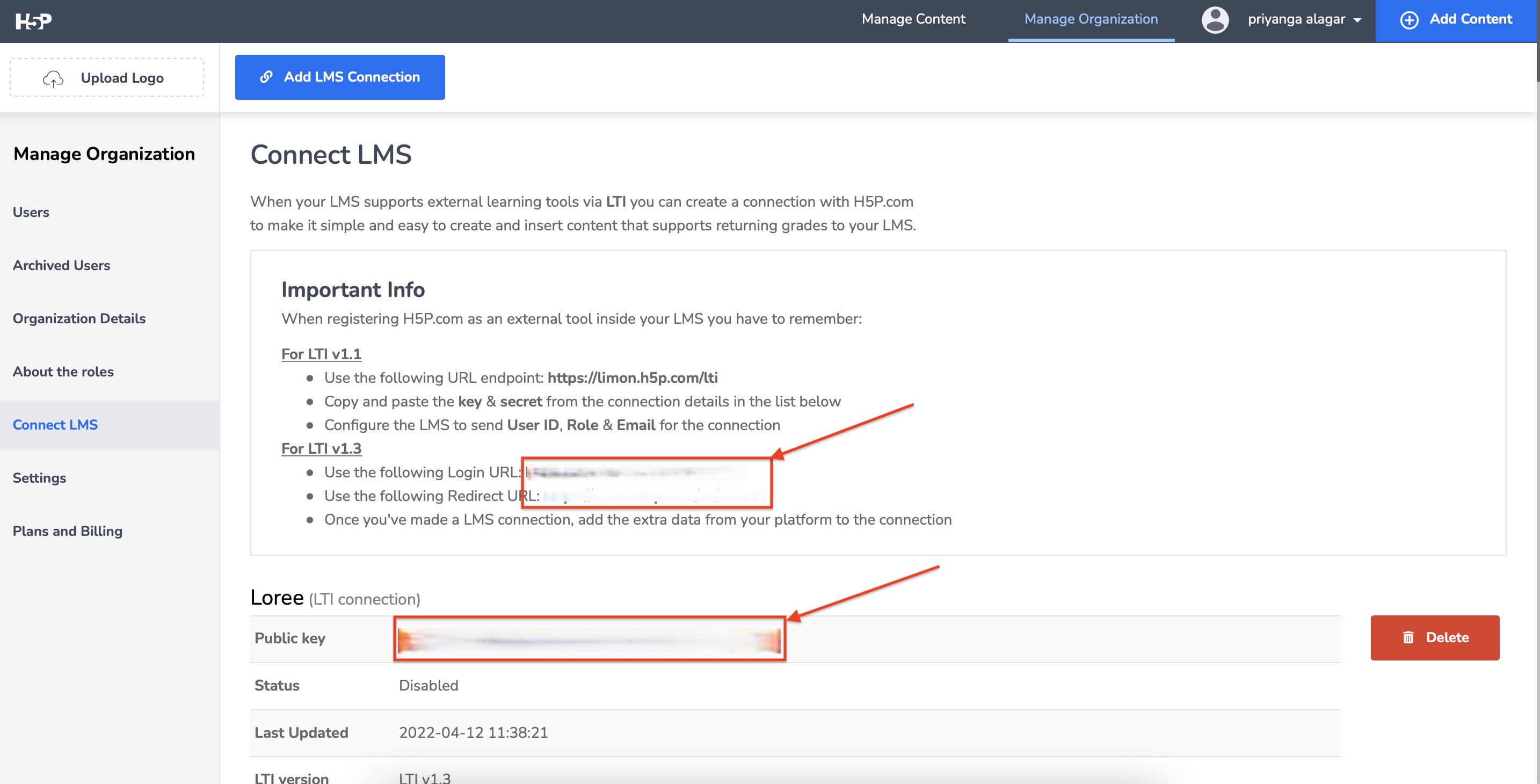 Domain Name → Fill in domain of your H5P account. Example: https://limon.h5p.com.