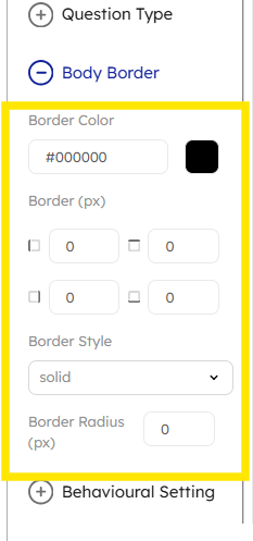 Body Border: The Body Border customization settings let you control the appearance of the border around the main content area. You can adjust:
