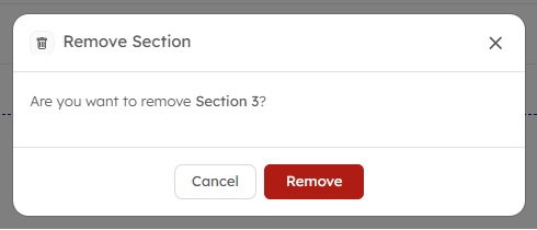 If you want to remove a section, simply click the Delete icon on the section line. A confirmation window titled "Remove Section" will appear—select "Remove" to permanently delete that section.