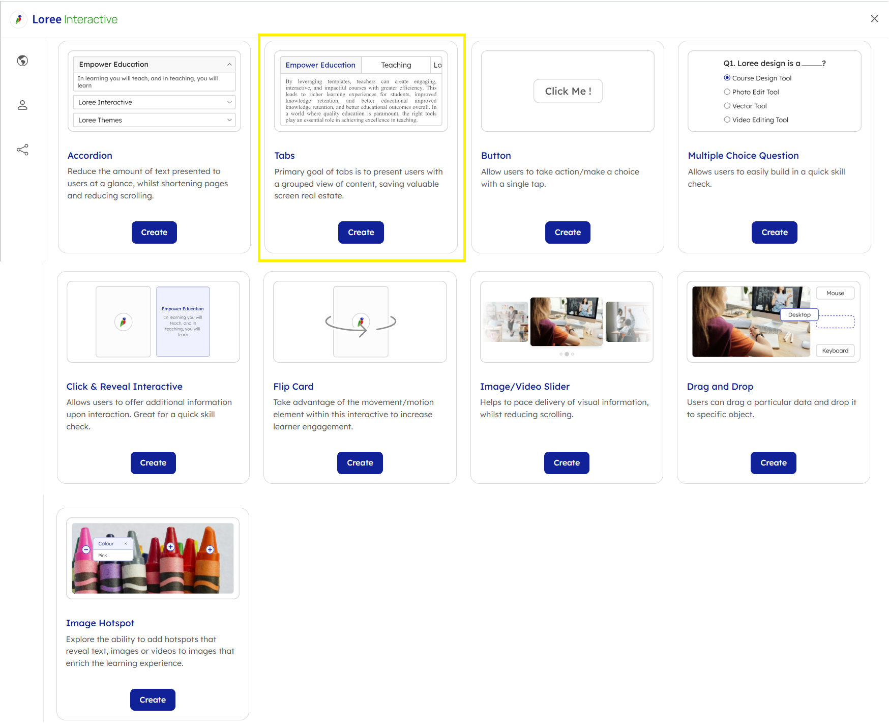 To create a Tabs interactive, follow these steps: