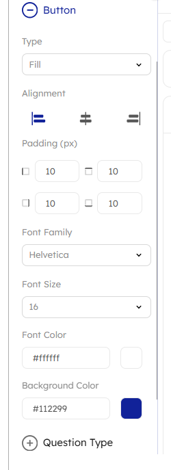 Customize Options:Customization options allow users to personalize and adjust fonts, colors, styles, and spacing to suit preferences or brand needs, enhancing appeal and usability. For Button interactives, options include types, alignment, padding, font family, size, color, and background for emphasis and readability. |