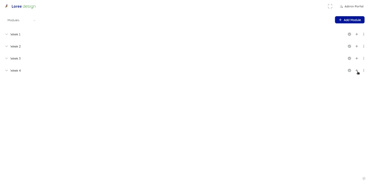 To create new modules for your Canvas courses in Loree, you don't need to go back to Canvas itself. Simply open Loree from the left hand navigation in the Canvas Course shell and look for the "+ Module" icon at the top right screen. Clicking on this icon will open a new modal window where you can enter the necessary information, such as module name, date, and other details, to create your modules.