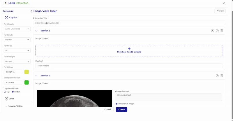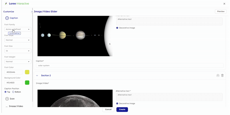 Caption: Customize the text that appears below each image or video to provide context or descriptions.