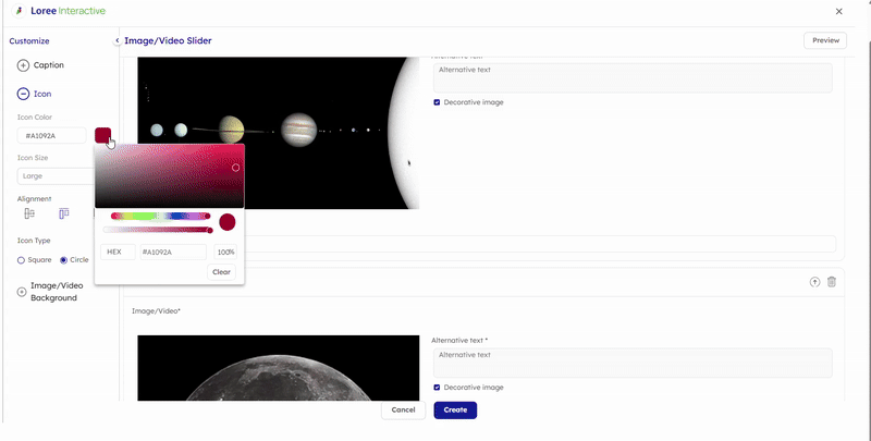 The Image/Video Slider includes the following customization options to help you tailor the look and feel of your content: