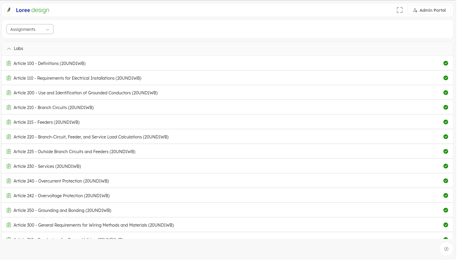Loree features its own top navigation bar that provides users with the option to select or filter the course content type, which can be modules, pages, assignments, discussions, or syllabus. These choices are available in a drop-down list. Please ...