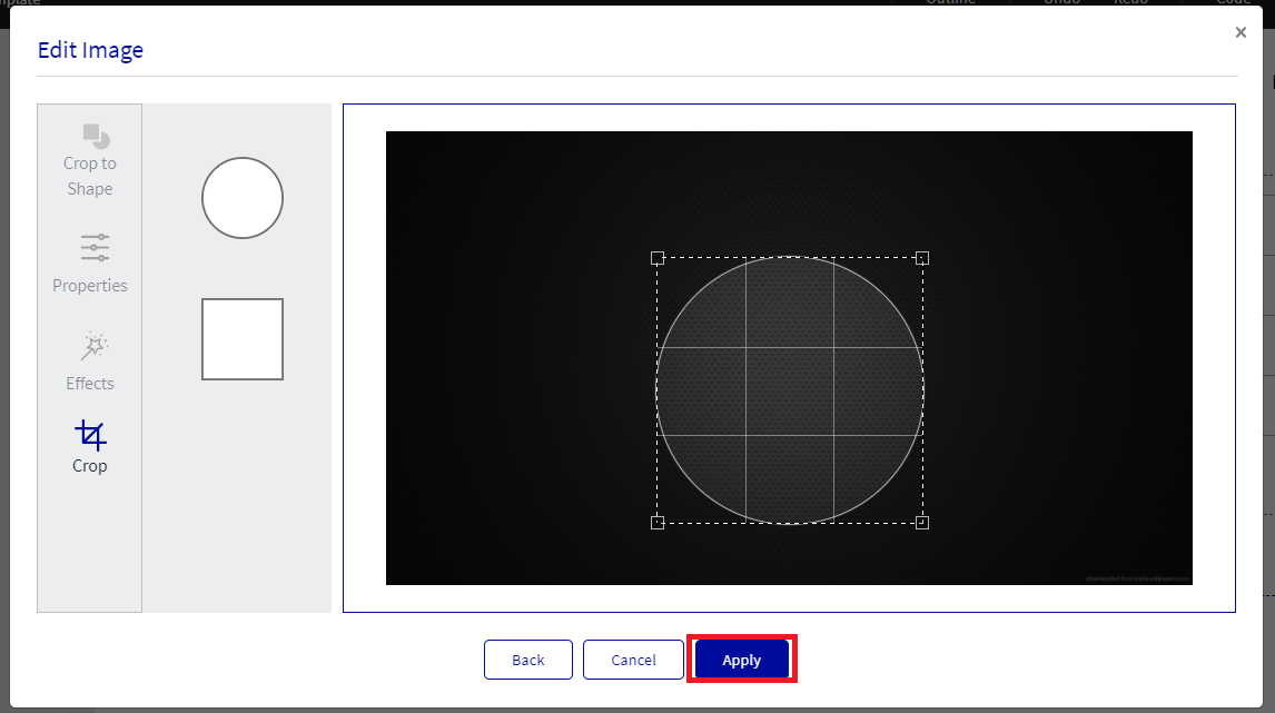 Note: Edit image option will be available for the images that are available for upload or in the course images.