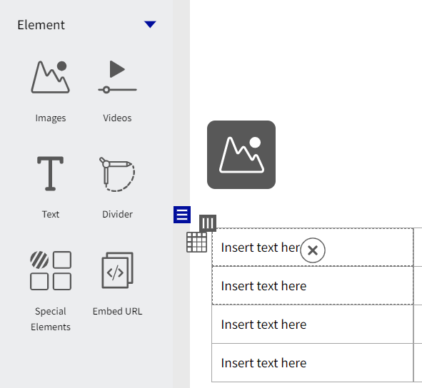 As a Loree user, Now we will be able to add only the following Elements inside a cell of a table.