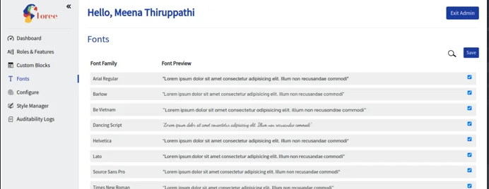 As a Loree Admin, previously not allowed to deselect the default fonts provided by Loree. As per a suggestion from most of the clients, Now we are allowing the admin to deselect the default fonts provided by Loree.